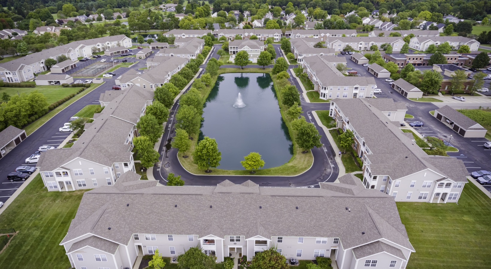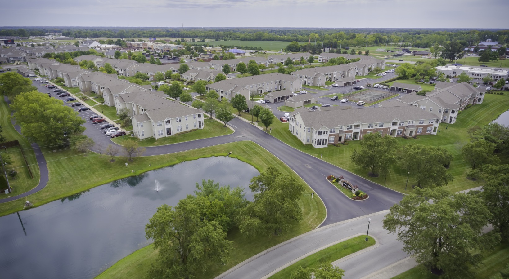 • Aerial view of Pebble Brook Village in Noblesville, Indiana