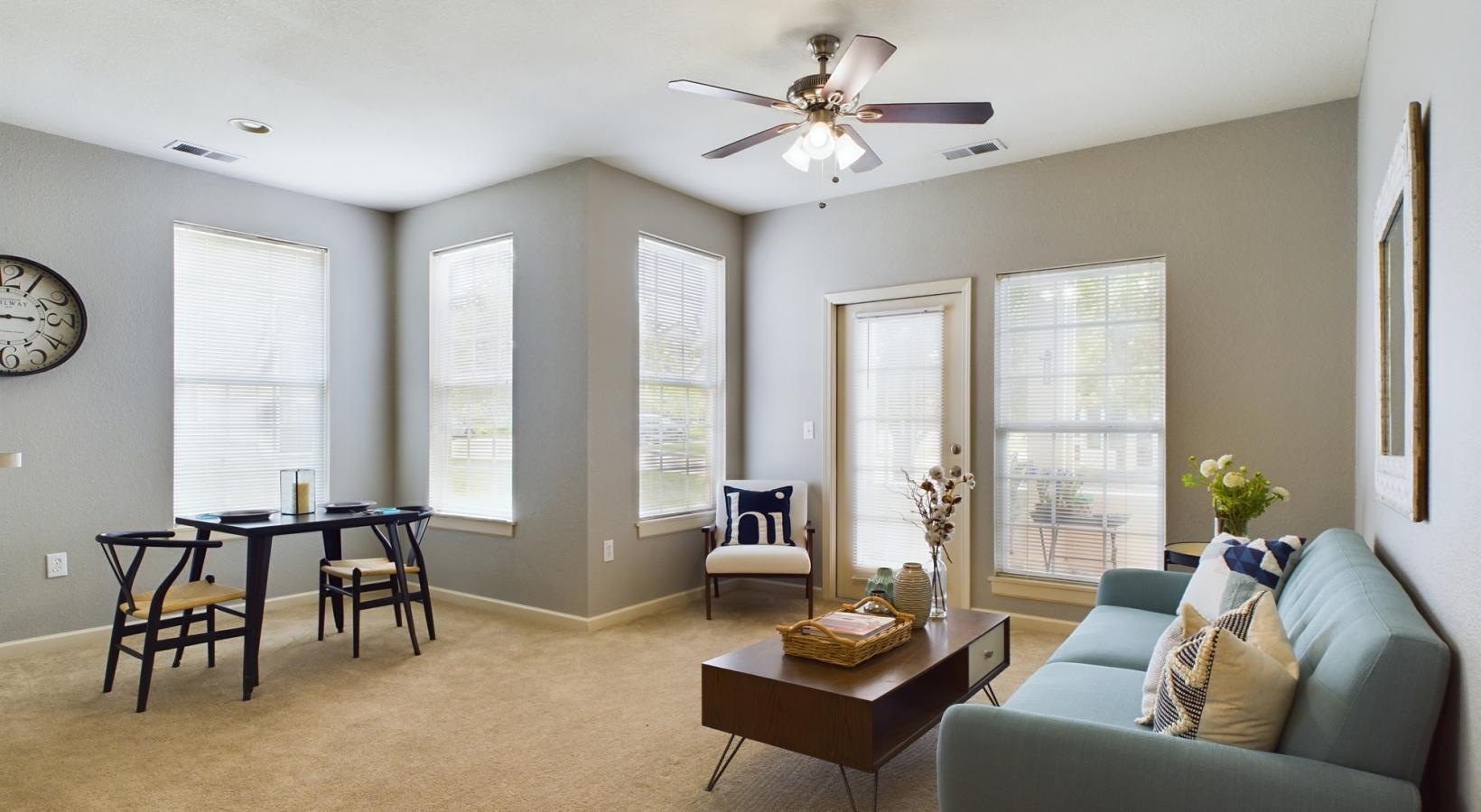 • Aerial view of the pool at Pebble Brook Village Apartments